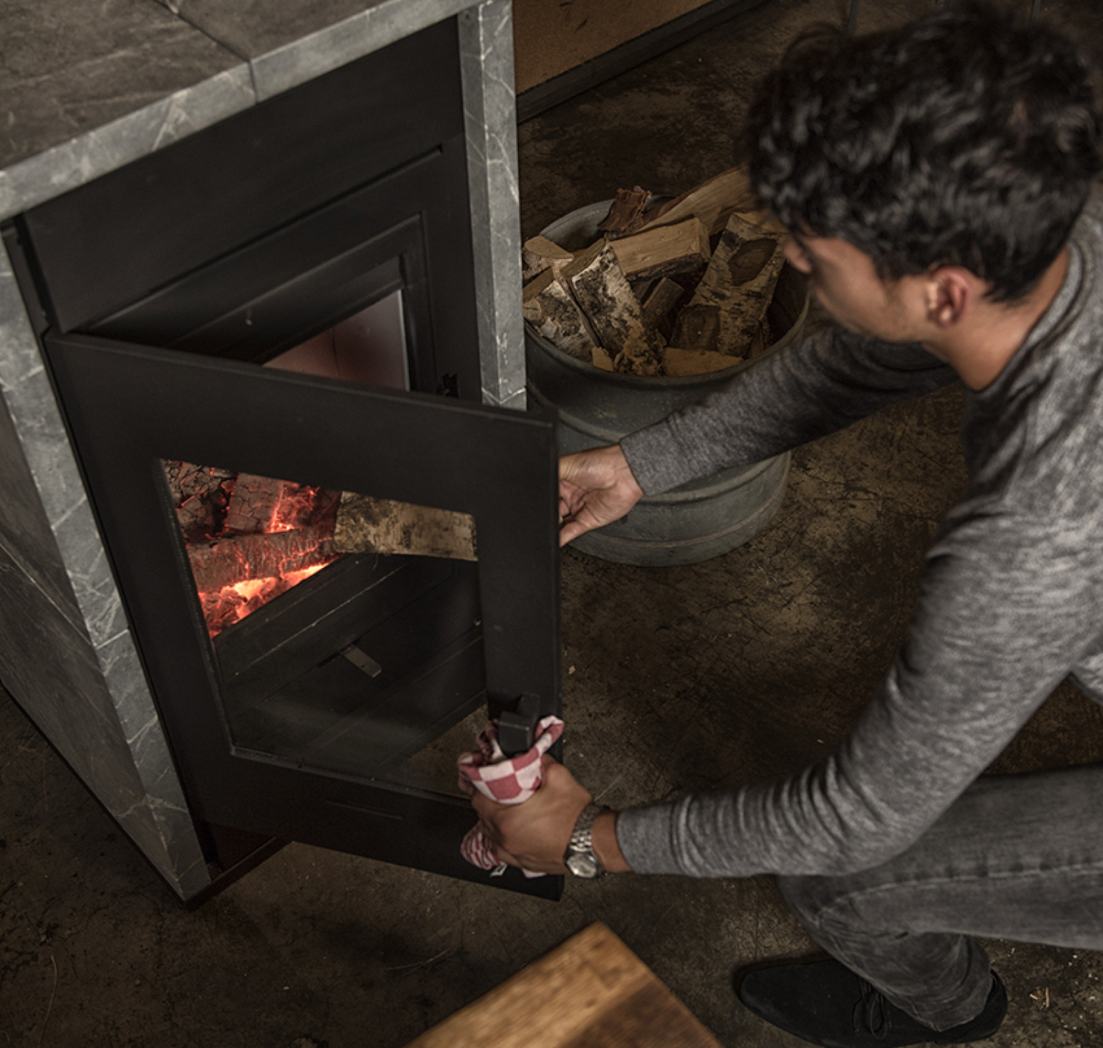 This stove is closer to nature, you are closer to this stove. It radiates from it and you don't want to walk away from that. A soapstone stove like the Pecan Eco is not just an object in your (garden) room, it is an experience.